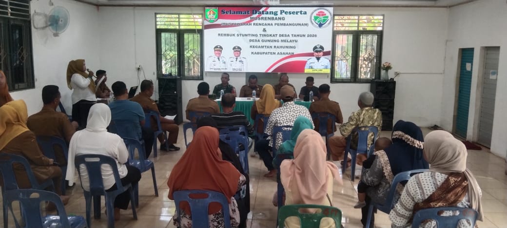 Gunung Melayu — Pemerintah Desa Gunung Melayu melaksanakan kegiatan Musyawarah Perencanaan Pembangunan (Musrenbang) Desa yang dirangkaikan dengan Rembuk Stunting Tahun 2026, bertempat di balai desa Gunung Melayu, Kecamatan Rahuning, Kabupaten Asahan.